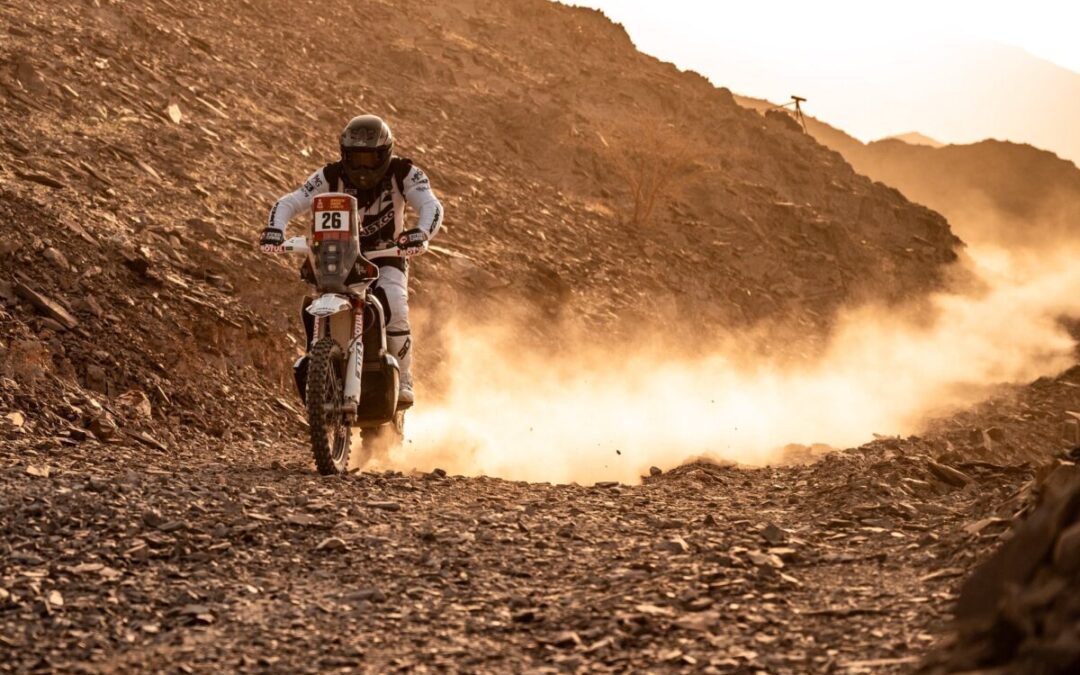 Konrad Dąbrowski (DUUST Rally Team): „Trudny dzień dla mnie. Okazało się, że był problem w moim tylnym zawieszeniu od startu dzisiejszego odcinka. Wywróciłem się przez to na kilometrze 20. w kamieniach. Mocno pogiąłem motocykl plus poobijałem samego siebie. Podarłem spodnie, a wężyk od camelbacka odpiął się i chwilę po ponownym ruszeniu odpadł, więc nie mogłem pić w trakcie jazdy przez 380 kilometrów. W tym momencie najbardziej doskwiera mi prawy nadgarstek. Straciłem dziś trochę czasu, ale nie poddajemy się, Dakar jest długi i będziemy walczyć dalej.”