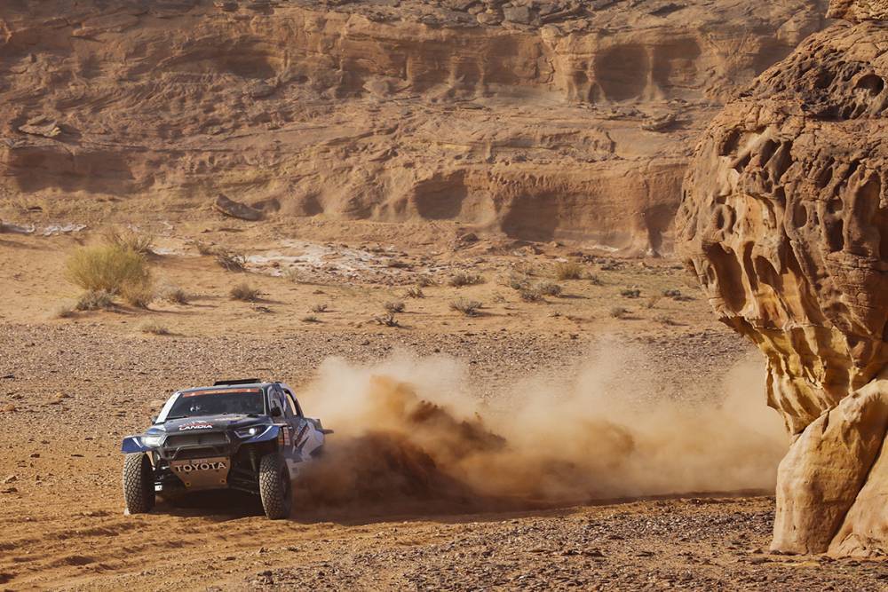 „Naszym celem jest zajęcie miejsc na podium; dokładna kolejność nie ma znaczenia” – to marzenie polskiej rodziny Goczałów, od kiedy jeżdżą razem w Dakarze, począwszy od startu w klasie SSV w 2023 roku. Najmłodszy członek klanu, Eryk, nie miał jeszcze prawa jazdy, gdy jego ojciec Marek przecierał szlaki na Dakarze w 2022 roku, odnosząc sześć zwycięstw etapowych i zajmując czwarte miejsce w klasyfikacji generalnej. Jego wujek Michał wygrał dwa odcinki specjalne i ostatecznie zajął piąte miejsce. „Cudowne dziecko” nie zawiodło w swoim debiucie w kolejnym sezonie, wygrywając w klasie i zdobywając cztery zwycięstwa etapowe, a jego ojciec i wujek dołożyli kolejne trzy do rodzinnego dorobku. Ich przygoda w klasie lekkich prototypów zakończyła się w sumie 15 zwycięstwami etapowymi. Teraz zespół Energylandia Rally Team kupił trzy Toyoty Hilux, aby sięgnąć po triumf w klasie Ultimate. Ich początki w królewskiej klasie są całkiem udane. Na czwartym etapie zajęli trzy z sześciu pierwszych miejsc: Marek był trzeci za Henkiem Lateganem (14′15″), Eryk czwarty (17′36″), a Michał szósty (19′53″). Najmłodszy członek rodziny jest najwyżej sklasyfikowany w rajdzie – na dziewiątym miejscu ze stratą 21 minut, a dwaj pozostali Goczałowie plasują się w pierwszej piętnastce.